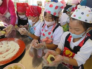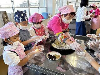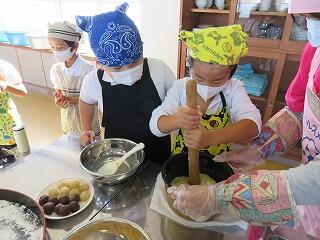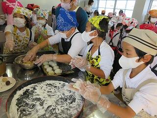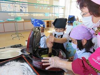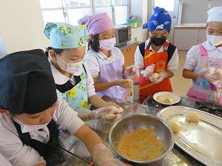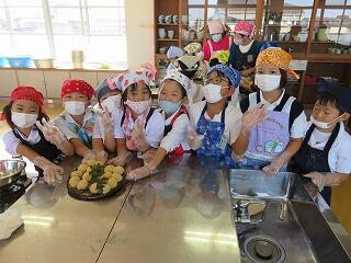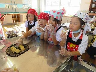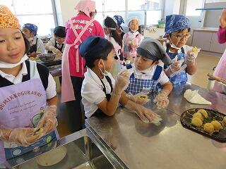 5時間目、生活科の時間に2年生が「おいも大福」をつくりました。