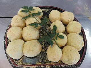 中にあんこをいれ、きなこをまぶしてできあがりです!