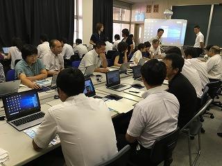 9月から文政小の児童用パソコンがタブレットパソコンになります。授業で活用するため、研修会で勉強しました。