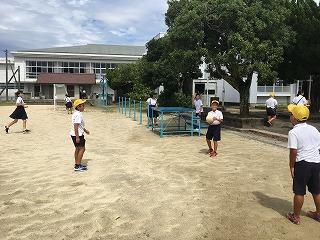 友達とボール遊び。外で遊ぶと気持ちがいいですね。