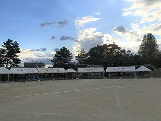 保護者の皆様にご協力いただき、児童用テントを設置しました。