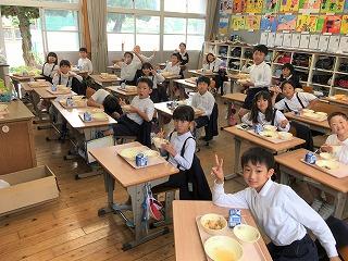 当番さんに感謝の言葉を言って、いつもいただいています。