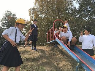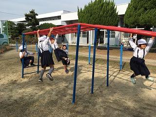 今日は暖かくて、たくさんの児童が外で遊んでいました。