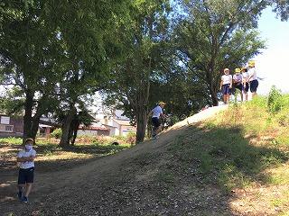 山から滑り降りて、遊んでいました。