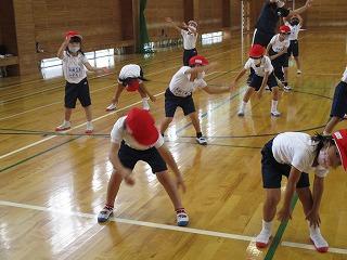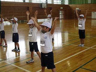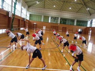 今日は、体育館でラジオ体操の練習をしました。