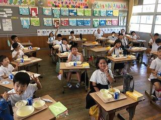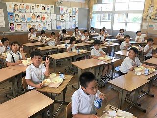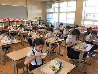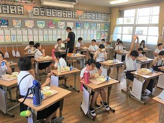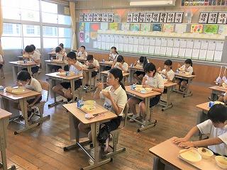 ★給食でも、コロナ対策が大変です。一言もしゃべらないで、シーンとした中での給食となっています。