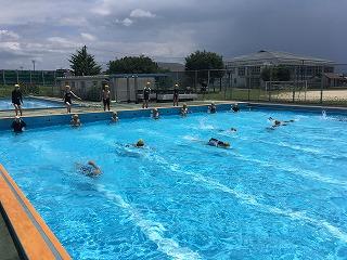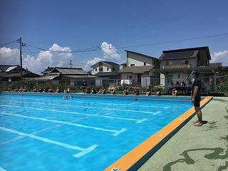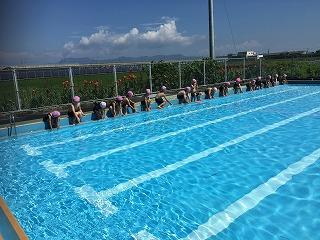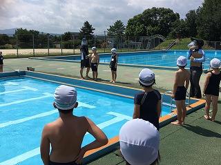 担任の先生から「目標をもって、安全に水泳に取り組もう!」と、話がありました。