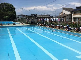 2時間目に3年生、4時間目に6年生のプール開きがありました。
