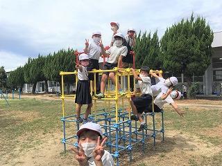 暑い中、みんなきちんとマスクをして遊んでいました。