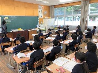 5時間目、1年2組で国語の研究授業がありました。