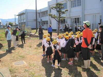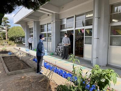 子供たちが植えた後、苗の確認をされました。水かけもしてくださって本当に感謝!です
