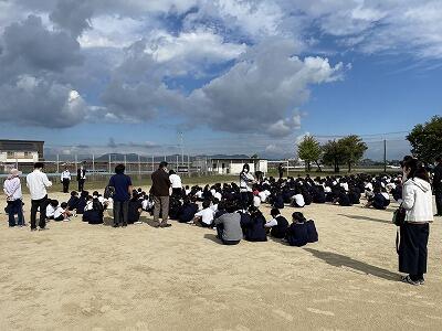 ★避難の仕方を警察署の方からほめていただきました。これまで、「地震」「水害」と2回の避難訓練を行ってきた成果です!静かに素早く避難できました!