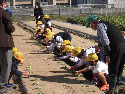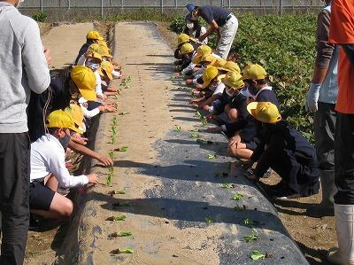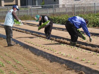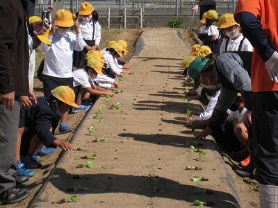 ★文政っ子応援協議会のみなさんのおかげで、たくさんのレタスが植えられました。これからお世話をがんばります!
