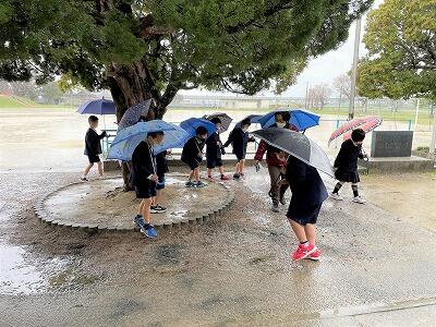 蜜を避けるため、児童玄関前でお別れの会をしました。