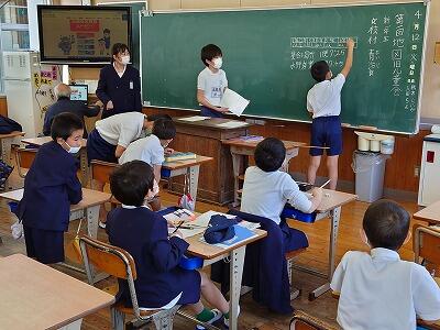 5,6年生の運営委員会の子どもたちが司会進行をしました。