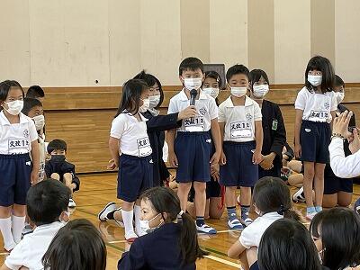 1年生の自己紹介のあとは、「文政小〇✕クイズ」でした。