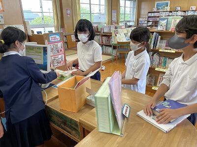 昼休みは教室で静かに過ごしたり、図書室で本を借りたりする姿が見られました。
