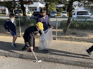 学校周辺の美化のため、熱心にごみを拾いができました。