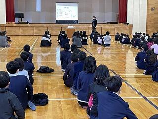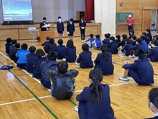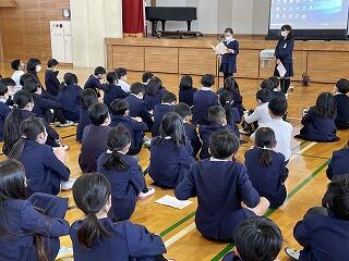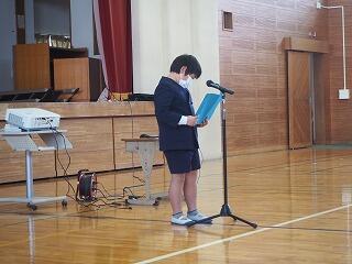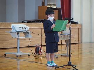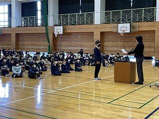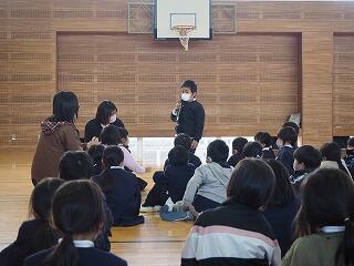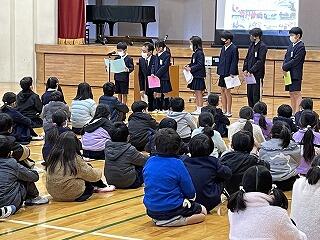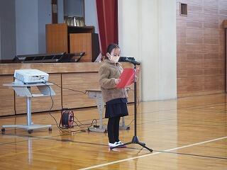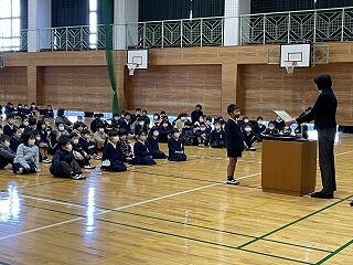1~6年生の代表児童が「2学期がんばったこと」「3学期がんばること」の作文発表をしました。