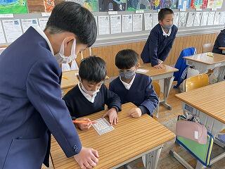 作文を読んでくれた友だちに、お返しの言葉を言いました。
