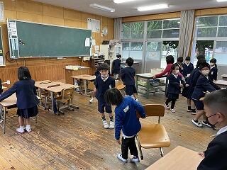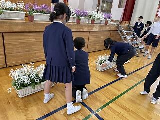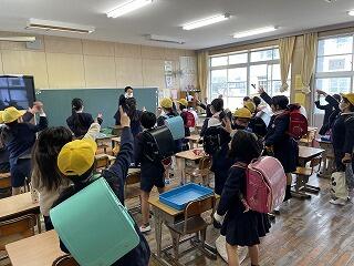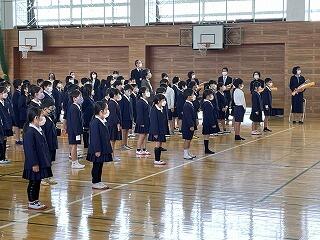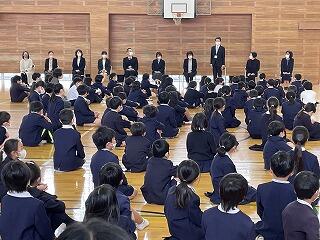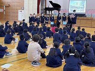 卒業証書授与式のあと、在校生の5年生と「わかれの言葉」を言いました。(呼びかけ)