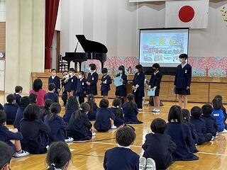 1~6年生の代表児童が、3学期がんばったことや、これからの目標などを発表しました。
