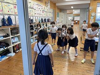 教室の後ろをつかって『だるまさんが転んだ』をしていました。