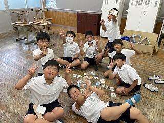 担任の先生と「ウノ」。