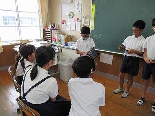 6年2組の子供たちが5年生に「文政の歴史」を伝えました。