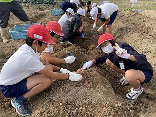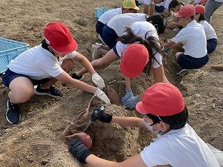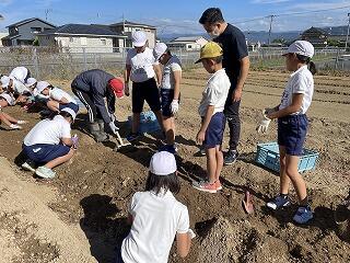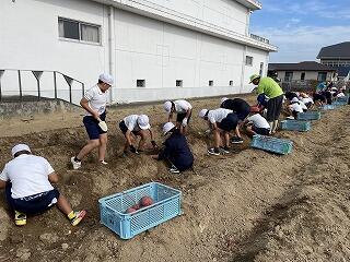 23日(月)に1~3年生が、24日(火)に4~6年生がいもほりをしました。