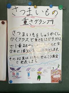 栽培委員会の企画で、とれたお芋の重さグランプリをします。