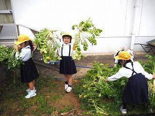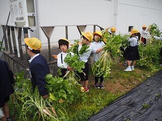 1年生が種まきや水やりをして、大根を育てました。