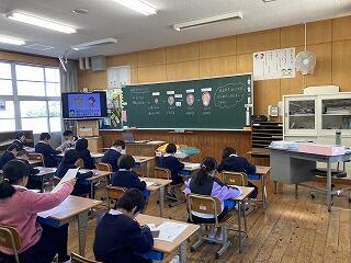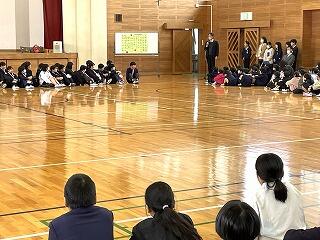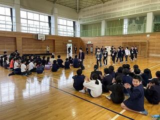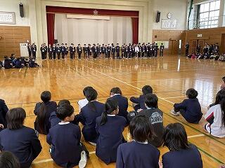 1~3時間目は各クラスで学習し、4時間目は全校集まって「お別れ会」をしました。