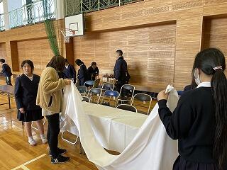 1~5年生が協力して、卒業証書授与式の会場ができあがりました。