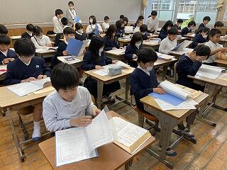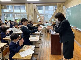 代表以外の児童も起立して、一緒に修了証をもらいました。