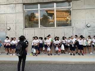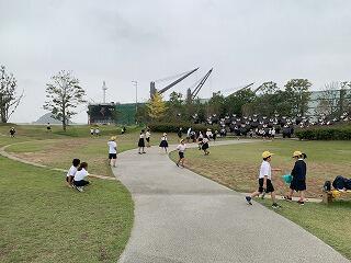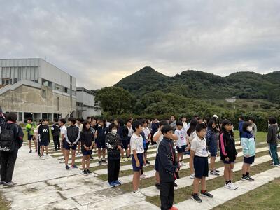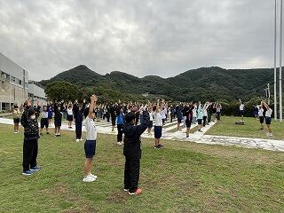 託麻西小と滑石小の人たちとラジオ体操をしました。