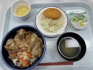 牛丼、コロッケ、デザートでした。