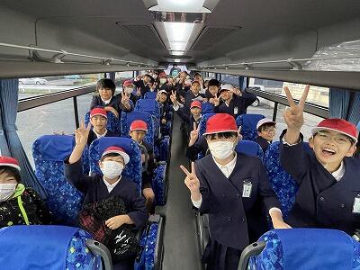 担任の先生がバスガイドさん役になって、往復の車中を盛り上げました