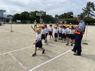 横断歩道や信号機など、気を付けて安全な歩行を学びました。