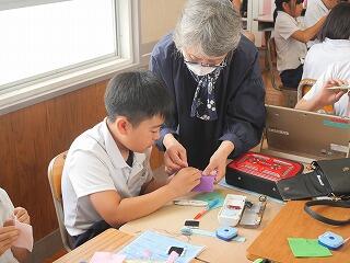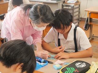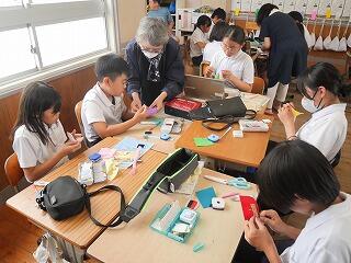 5,6時間目、5年生が家庭科の時間に裁縫をしました。