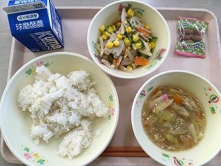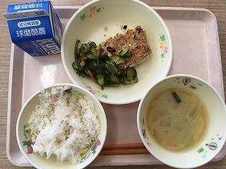 *3年生が菜の花プロジェクトで育てたお米を食べました。
