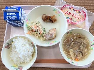 にっこり今年度最後の給食でした。コロナ禍で今まで以上に衛生面に気を付けて給食を作っていただきました。給食室の先生方、おいしい給食を毎日ありがとうございました。