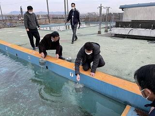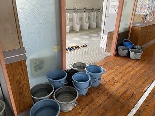 トイレのタンクの水を確保するため、みんなで水くみをしました。