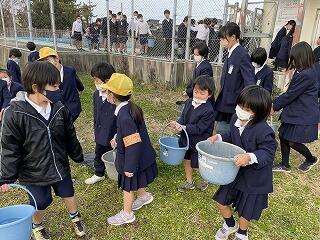 学校放送で、お手伝いを呼びかけると、たくさんの子どもたちが集まってくれました。