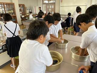家庭科の授業で「洗濯」をしました。