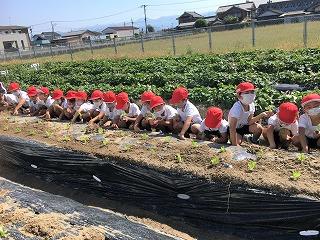 13日火曜日、1年生がレタスを植えました。