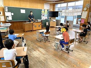 文政小を卒業した鏡中の生徒が来校。