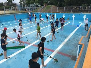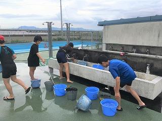 先週は5年生が、今日は6年生がプールを掃除しました。