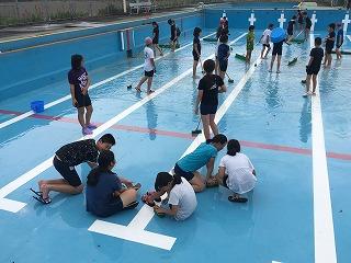 ★来週から水泳の指導が始まります。プールでの事故や熱中症など、不慮の事故に備えた研修を行うことで、職員の危機管理に対する意識と技術を向上させることができました。