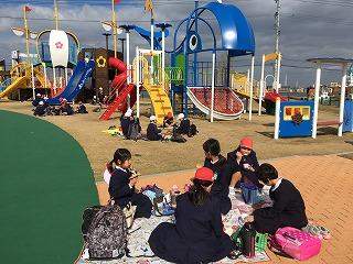 強風の中、お弁当を食べました。